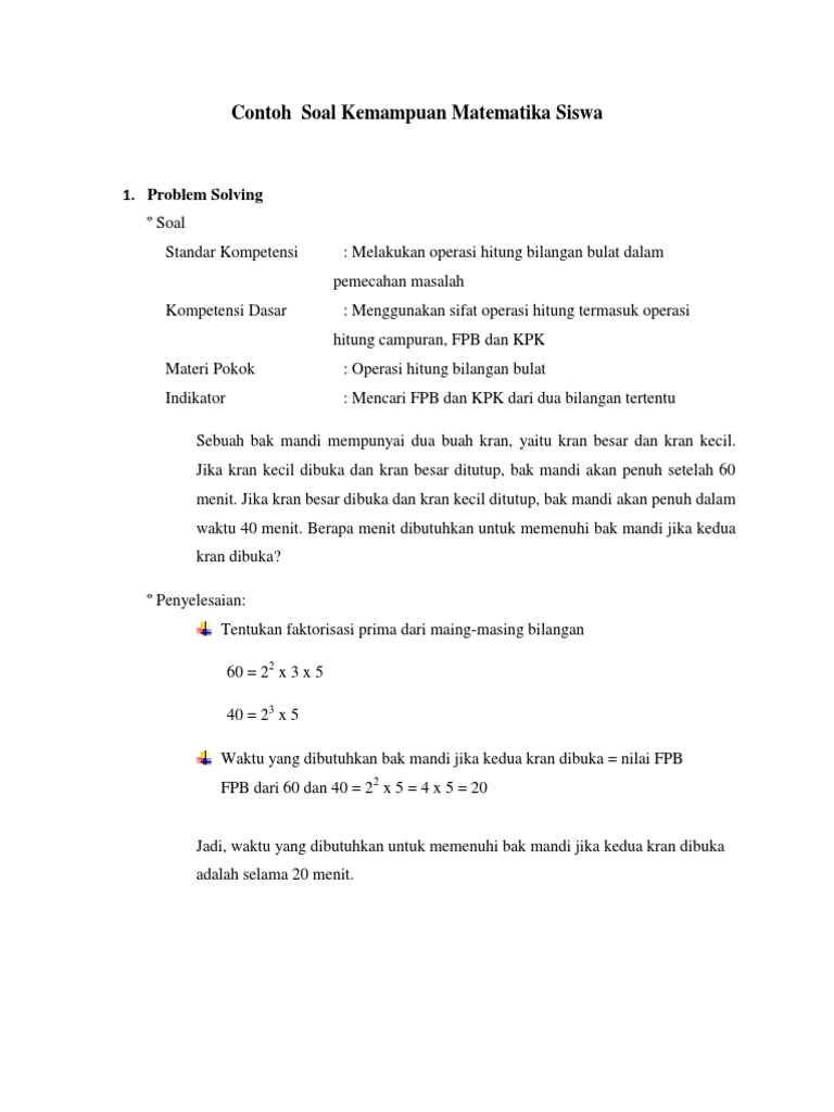 Contoh Soal Kemampuan Matematika Siswa 1 Problem Solving