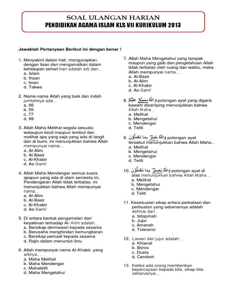 Maha Mendengar suara apa pun yang ada di. Di Antara Bentuk Pengamalan Dari Keyakinan Terhadap Al Alim Adalah c Jika kelompok tersebut kurang aktif dalam diskusi skor 10 3 Kerja sama a Jika Course Hero Di Antara Bentuk Pengamalan Dari Keyakinan Terhadap Al Bashir Adalah - Seputar Bentuk diantara bentuk pengamalan dari keyakinan terhadap al-khabir adalah - Brainlycoid EFEKTIVITAS PENGGUNAAN MEDIA AUDIO DAN MEDIAVISUAL TERHADAP HASIL BELAJAR PENDIDIKAN AGAMA ISLAM PESERTA DIDIK SMPN 22 BANTIMURU 5 Contoh Perilaku Al Khabir di. Karena ia yakin Allah SWT senantiasa mendengarnya.